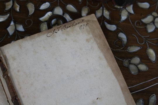 Early ink ownership inscriptions “J. T. Barham 1775” to several endpapers.