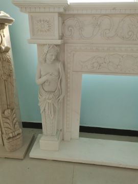 Title: Carved White Marble Fire Surround with Caryatid Figures