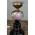 The lamp features a hand-painted floral panel to the rounded body, richly decorated with roses, poppies, and summer blooms against a cobalt blue ground with gilt scrollwork and banding.