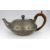 The teapot features a gently curved spout, original turned wooden handle with scroll end, and hinged lid with knop finial.