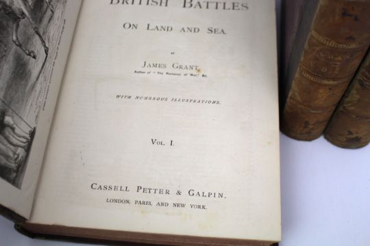 A complete three–volume set of British Battles on Land and Sea by James Grant, published by Cassell, Petter & Galpin, London, Paris and New York.