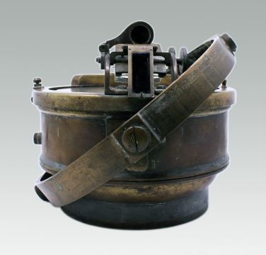 Housed within a heavy bronze case, it is mounted in its original gimbal bracket, designed to maintain level reading at sea.