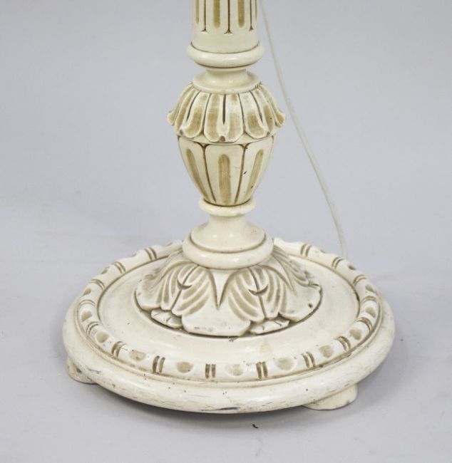 Vintage Carved Wood Painted Shabby Chic Standard Lamp