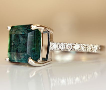 Title: Beautiful 3.42 CT Natural Emerald Ring With Natural Diamonds & Platinum 950