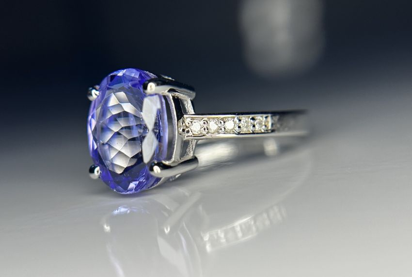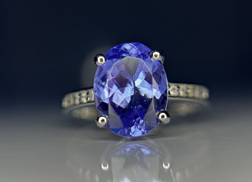 Beautiful 3.41 CT Natural Tanzanite With Natural Diamonds & 18k Gold