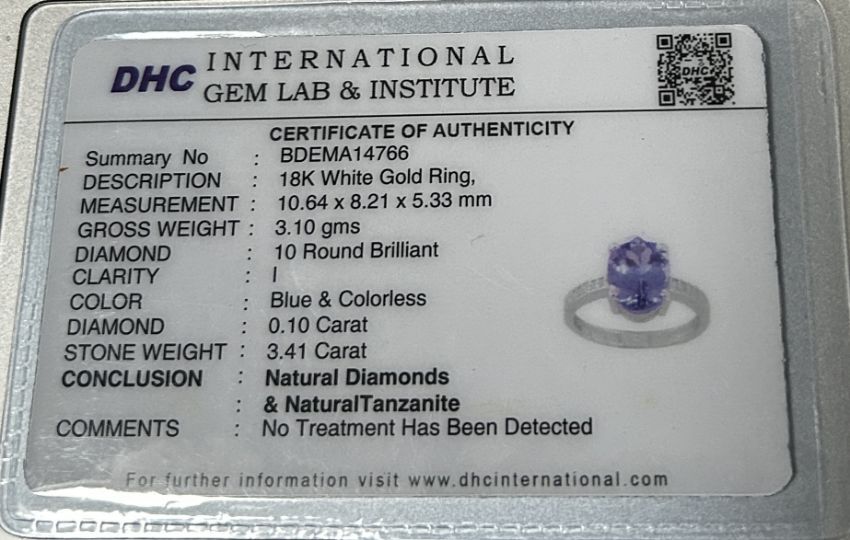 Title: Beautiful 3.41 CT Natural Tanzanite With Natural Diamonds & 18k Gold