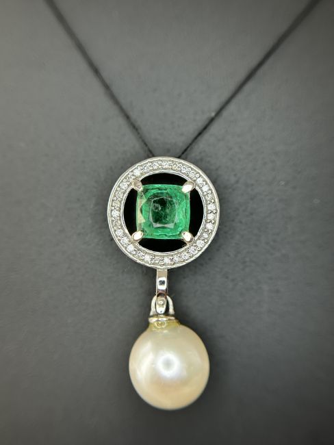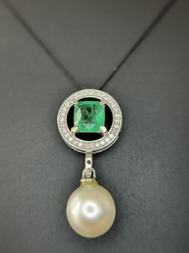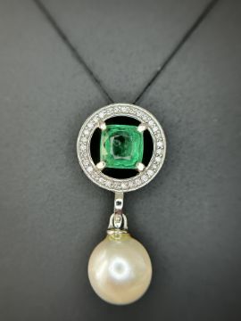Beautiful 5.55CT South Sea Pearl, 1.14ct Emerald, Diamonds & 950 Platinum Pendant