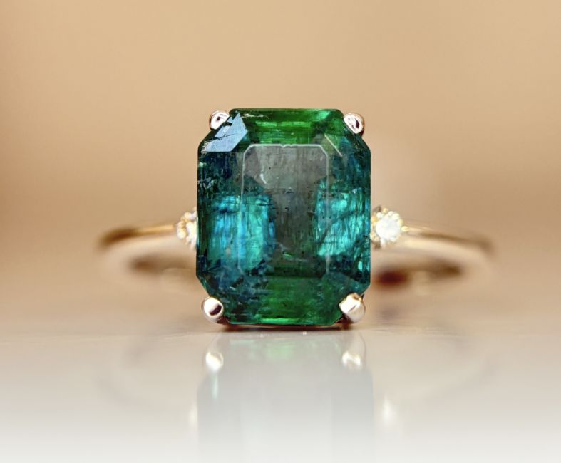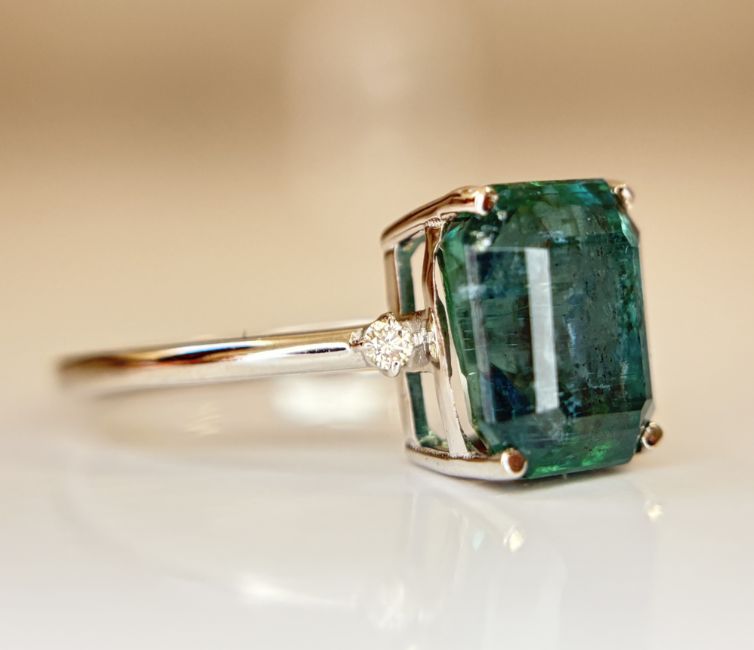 Title: Beautiful 3.01 CT Natural Emerald Ring With Natural Diamonds & Platinum 950