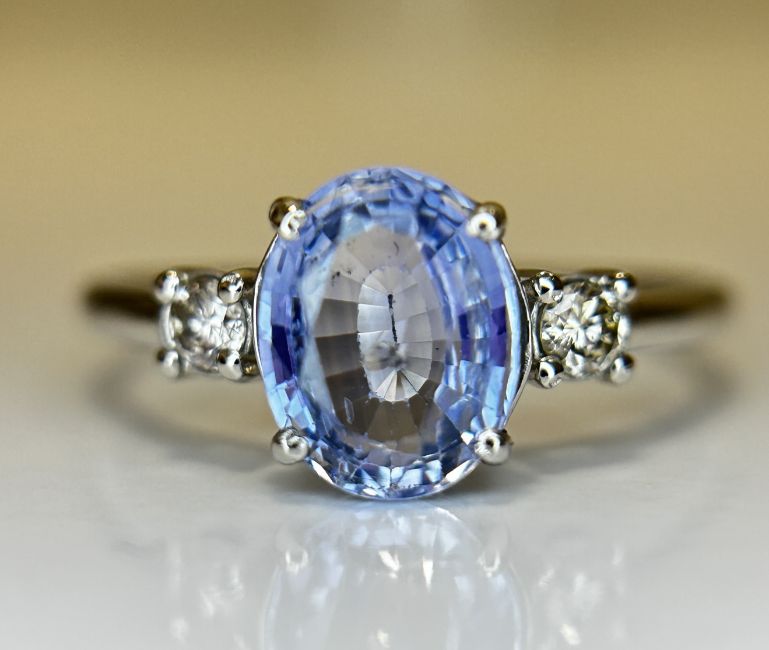 Title: Beautiful 1.75 Ct Unheated Ceylon Cornflour Blue Sapphire Diamonds & 950 Platinum