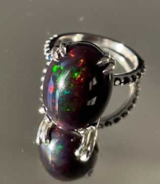 Beautiful Natural 7.66Ct Black Opal Ring With Natural Black Diamonds and 18k Gold