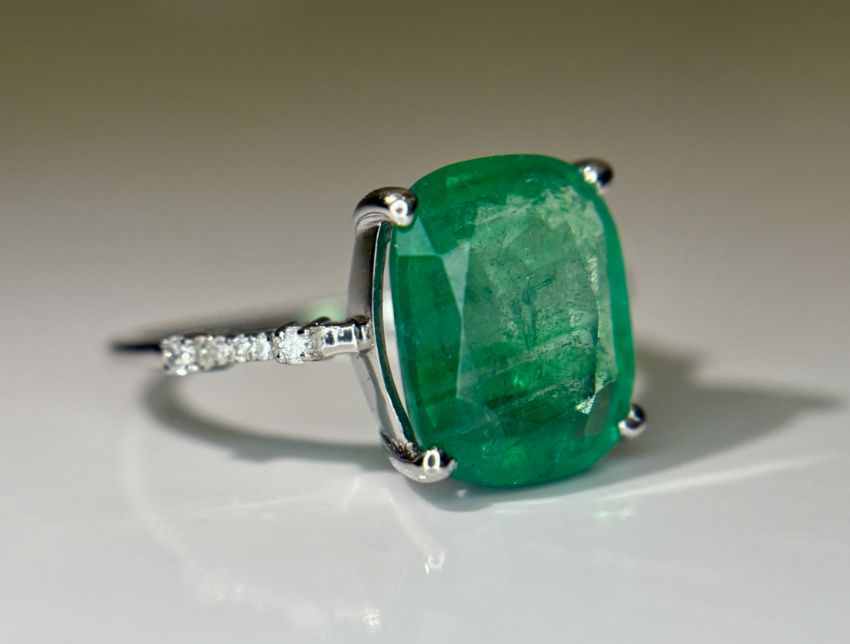 Title: Beautiful 3.40 CT Natural Emerald Ring With Natural Diamonds & Platinum 950