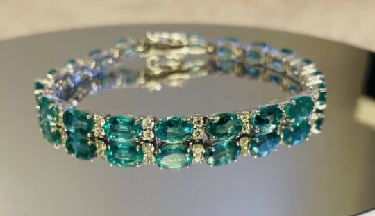 Beautiful 10.41 ct Natural Emerald Bracelet W Natural Diamonds & 18k Gold.