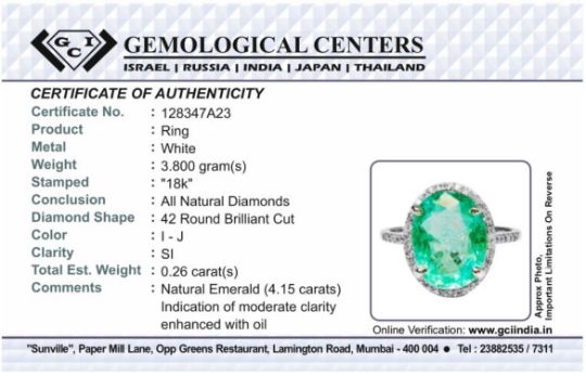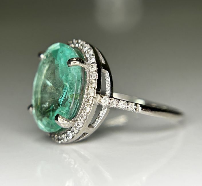 Title: Beautiful 4.15CT Untreated Natural Columbian Emerald Ring, Diamonds & 18k Gold