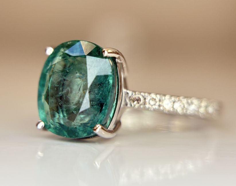 Title: Beautiful 3.10 CT Natural Emerald Ring With Natural Diamonds & Platinum 950