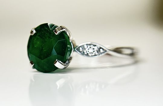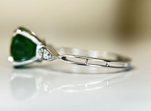 Beautiful Natural Emerald Ring With Diamonds and 18k Gold.