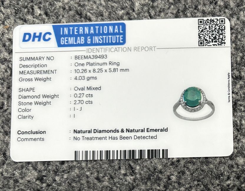 Title: Beautiful 2.70 CT Natural Emerald Ring With Natural Diamonds & Platinum 950