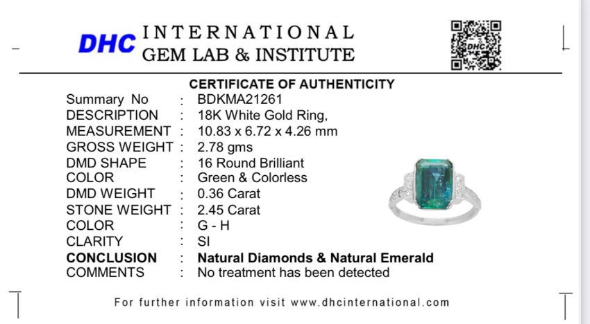 Title: Beautiful 2.45 CT Natural Emerald With Natural Diamonds & 18k Gold