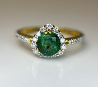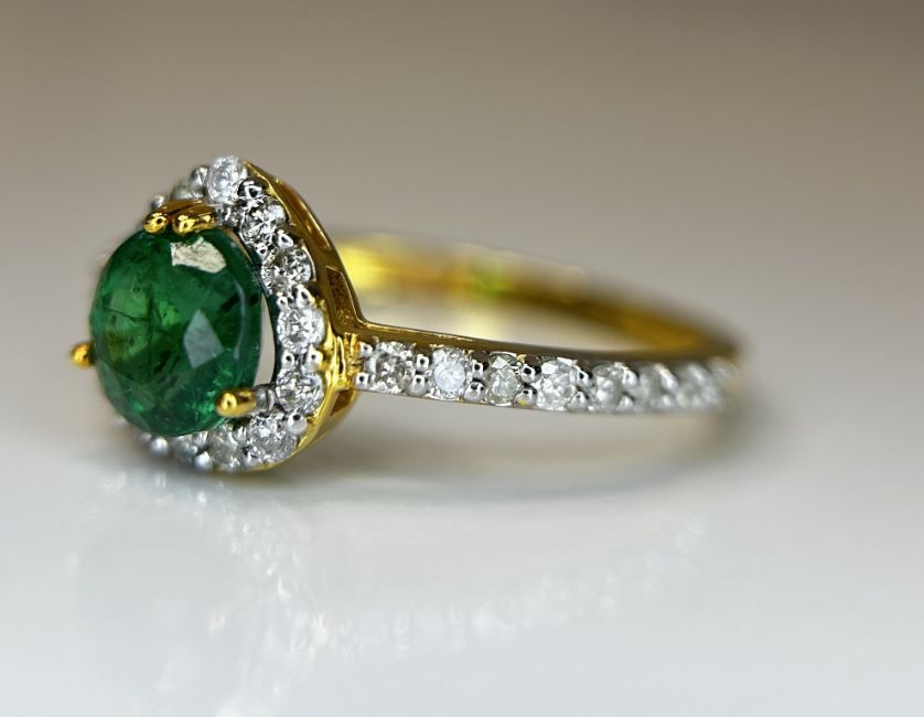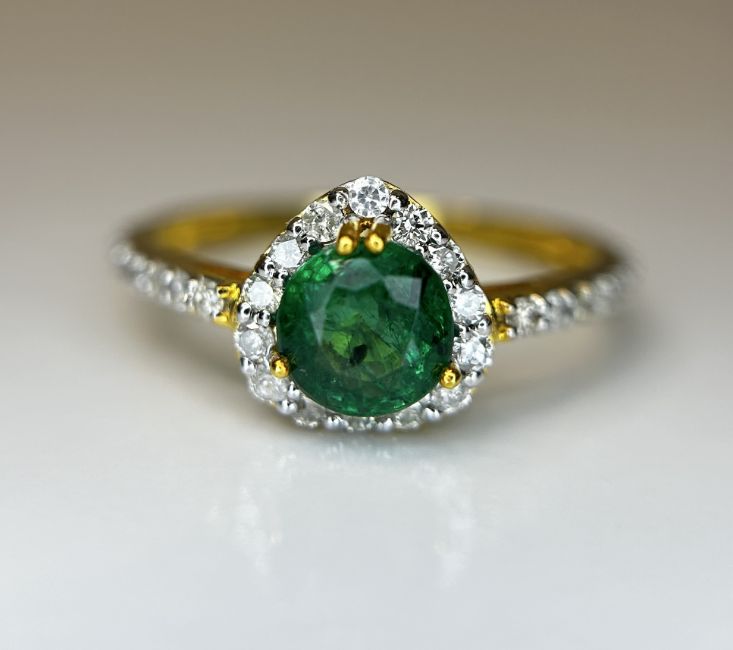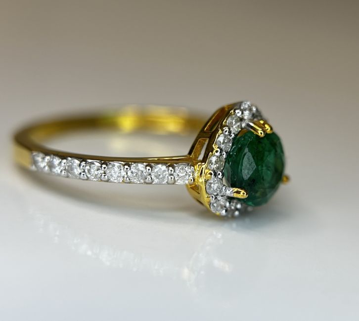 Beautiful 0.92 CT Natural Emerald With Natural Diamonds & 18k Gold