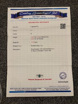 Title: Beautiful 0.42 CT Natural Emerald With Natural Diamonds & 18k Gold