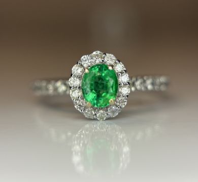 Beautiful 0.42 CT Natural Emerald With Natural Diamonds & 18k Gold