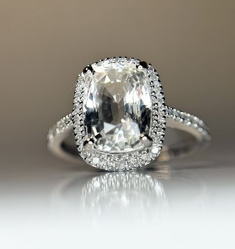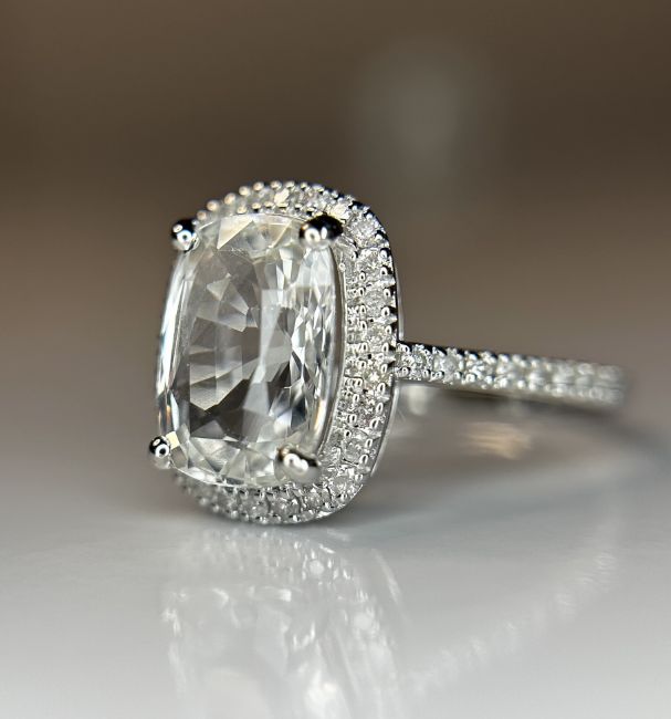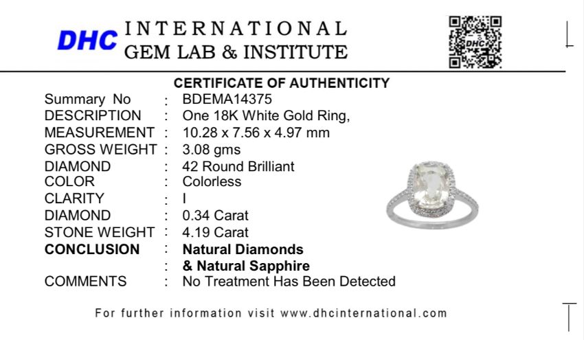 Title: Beautiful 4.19 CT Unheated Ceylon White Sapphire With Natural Diamonds & 18k Gold