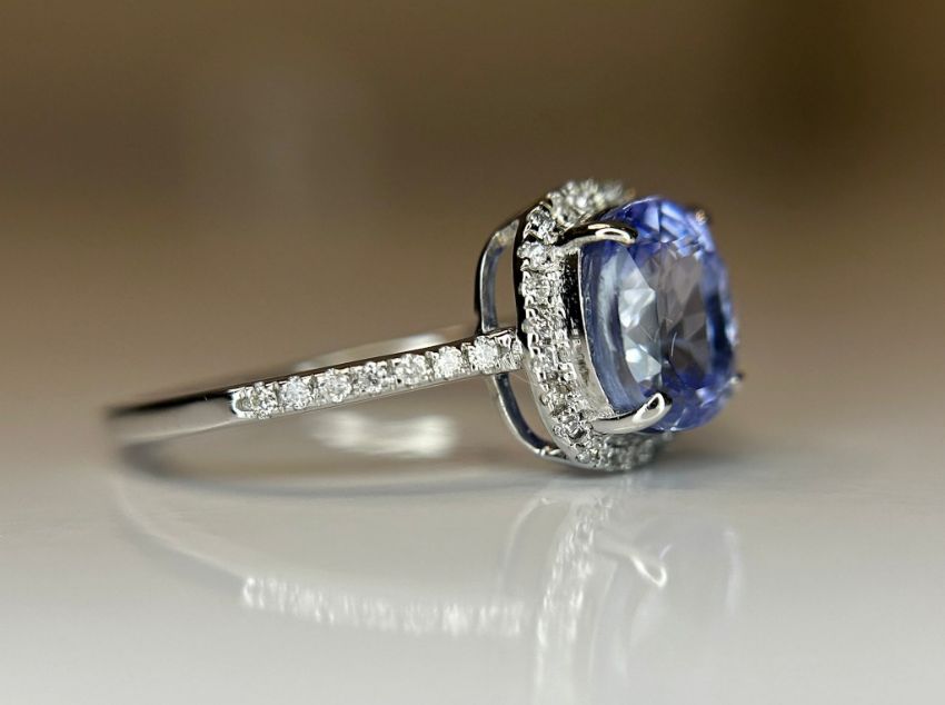 Title: 2.51 CT Unheated/Untreated Ceylon Cornflour Blue Sapphire Diamonds & 18k Gold