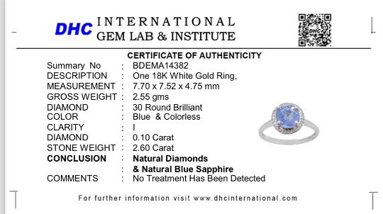 Title: Beautiful 2.60 CT Unheated Ceylon Blue Sapphire With Natural Diamonds & 18k Gold