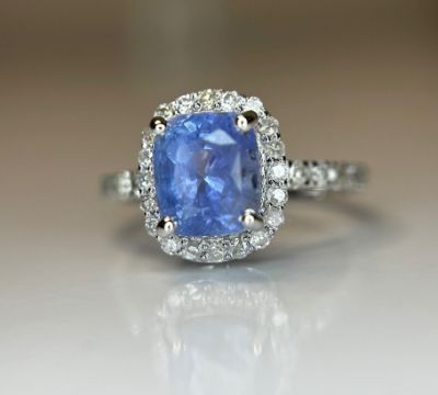 Title: 2.74 CT Unheated/Untreated Ceylon Cornflour Blue Sapphire Diamonds & 18k Gold