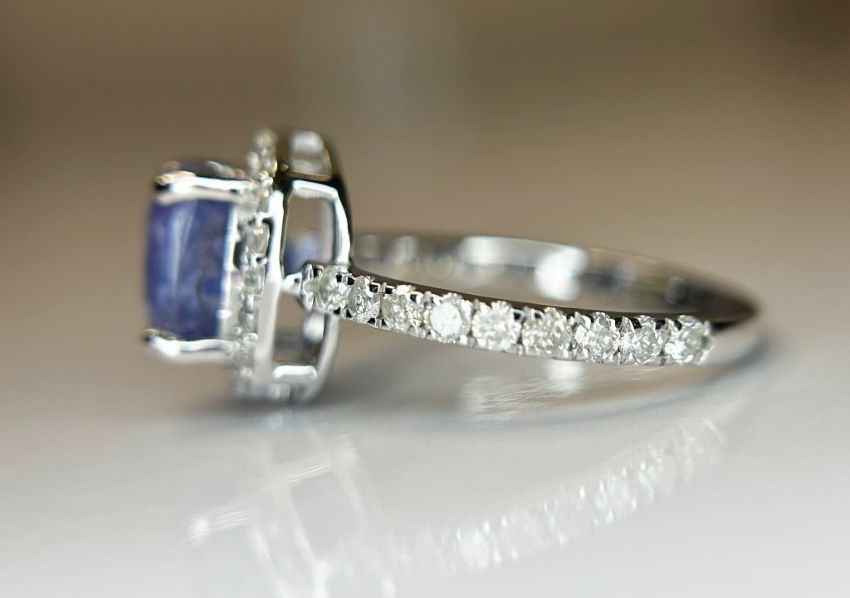 Beautiful 2.74 CT Natural Ceylon Blue Sapphire With Natural Diamonds & 18k White Gold.