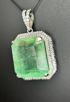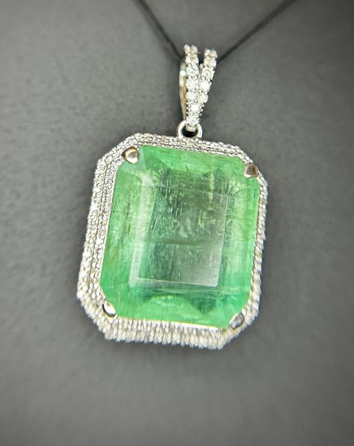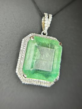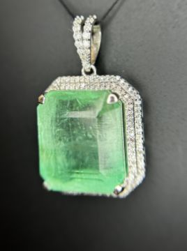 Title: Beautiful 19.58 ct Natural Columbian Emerald With Natural Diamonds & 18k Gold