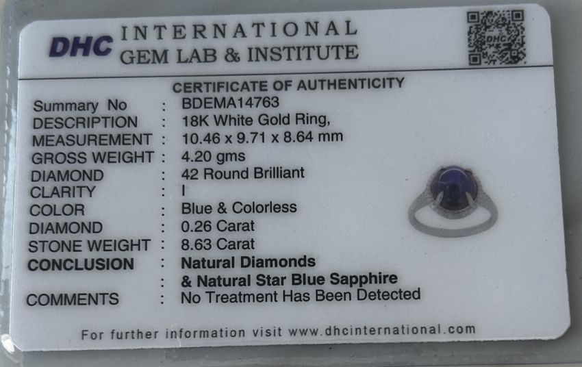 Title: Beautiful 8.63 CT Unheated Ceylon Star Blue Sapphire With Natural Diamonds & 18k Gold