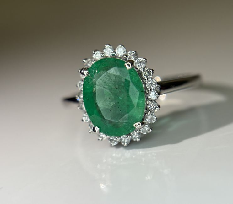 Title: Beautiful 2.30 CT Natural Emerald Ring With Natural Diamonds & Platinum 950