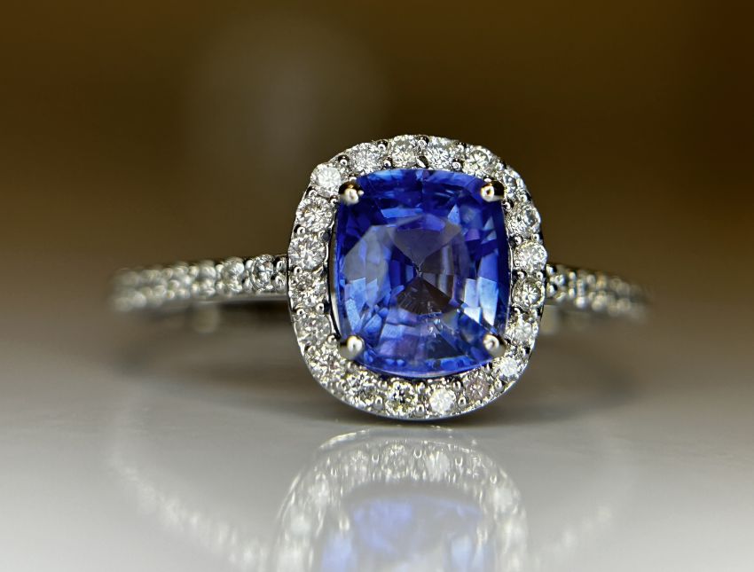 Beautiful 1.38 CT Natural Ceylon Blue Sapphire With Natural Diamonds & 950 Platinum