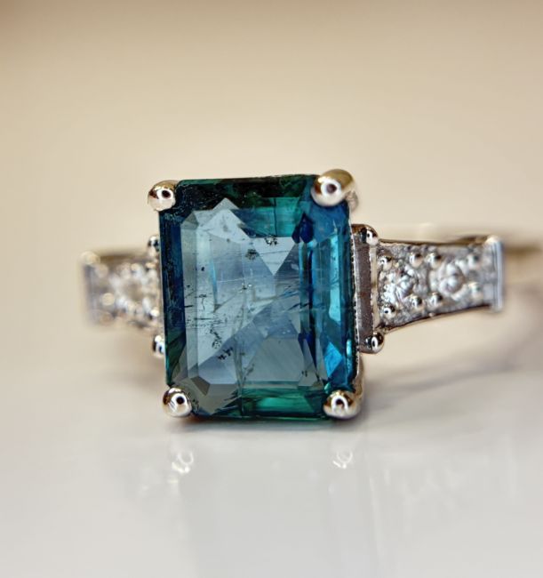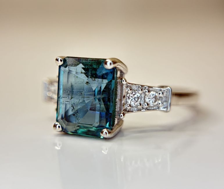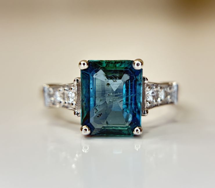 Title: Beautiful 2.10 CT Natural Emerald With Natural Diamonds & 18k Gold