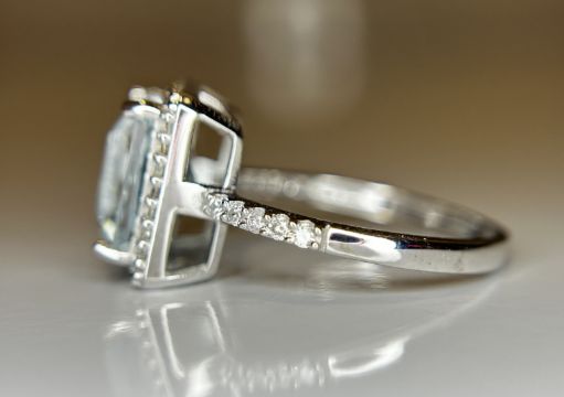 Title: Beautiful 3.55 CT Natural Aquamarine Ring With Natural Diamonds & 18k White Gold