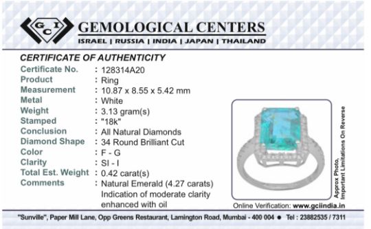 Title: Beautiful Natural Emerald 4.27 CT With Natural Diamonds & 18k Gold