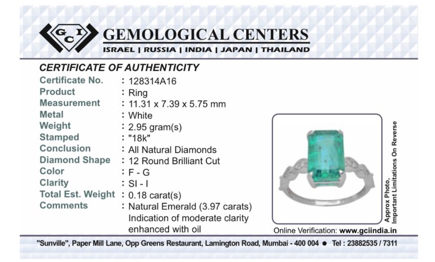 Title: Beautiful Natural Emerald 3.97CT With Natural Diamonds & 18k Gold