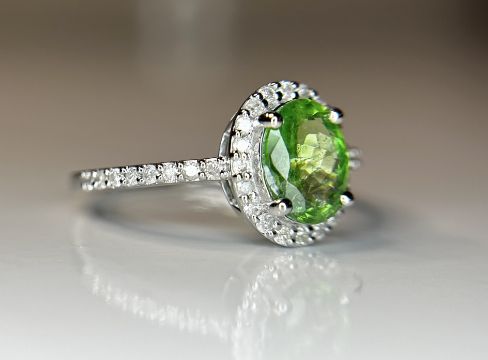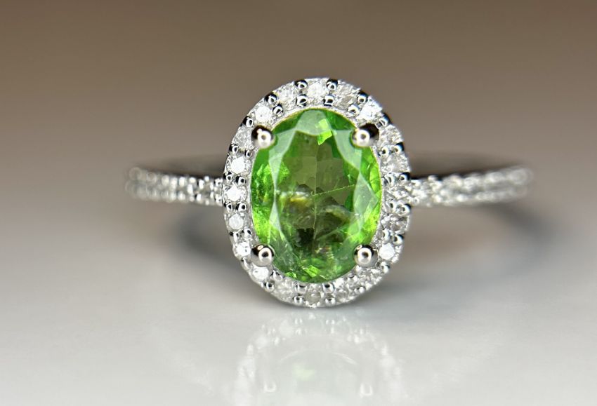 Title: Beautiful 1.22 CT Natural Tsavorite Garnet With Natural Diamonds & 18k Gold