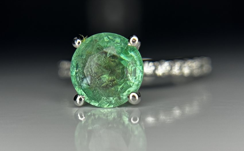 Title: Beautiful 1.84 ct Natural Emerald With Natural Diamonds & 18k Gold