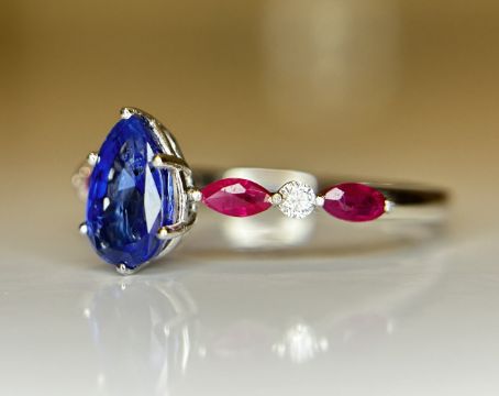 Beautiful 1.06 CT Natural Burma Blue Sapphire With Natural Burma Ruby, Natural Diamonds & 950 Platinum