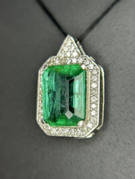 Title: Beautiful 2.68 CT Natural Emerald Pendant With Diamonds & Platinum 950