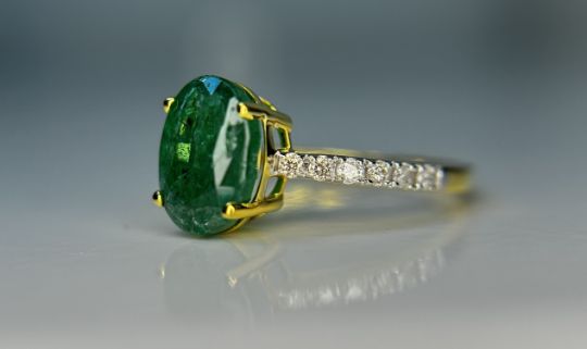 Beautiful 2.02 CT Natural Emerald With Natural Diamonds & 18k Gold