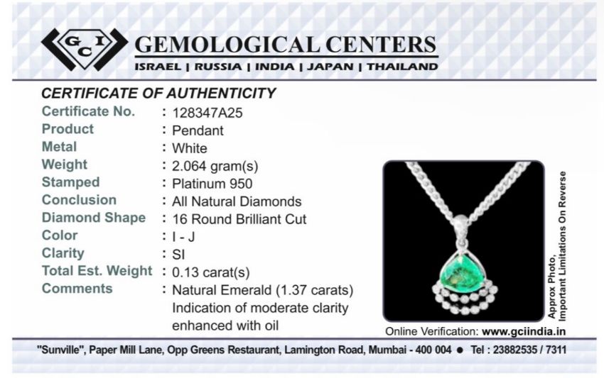 Title: Beautiful 1.37ct Natural Emerald Pendant With Diamonds & 950 Platinum