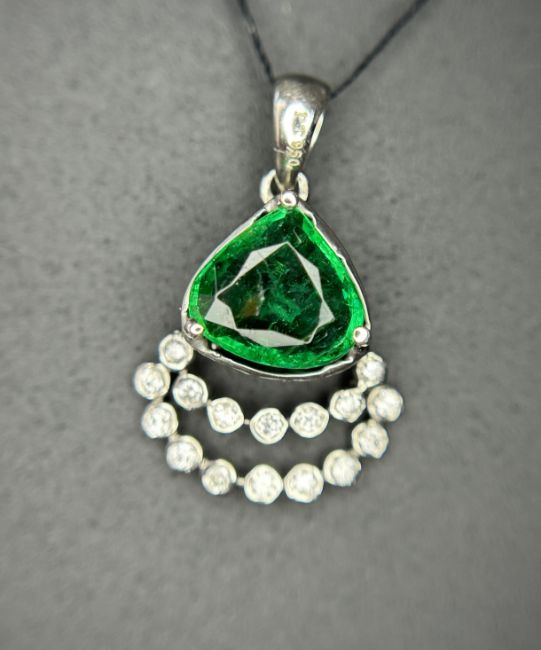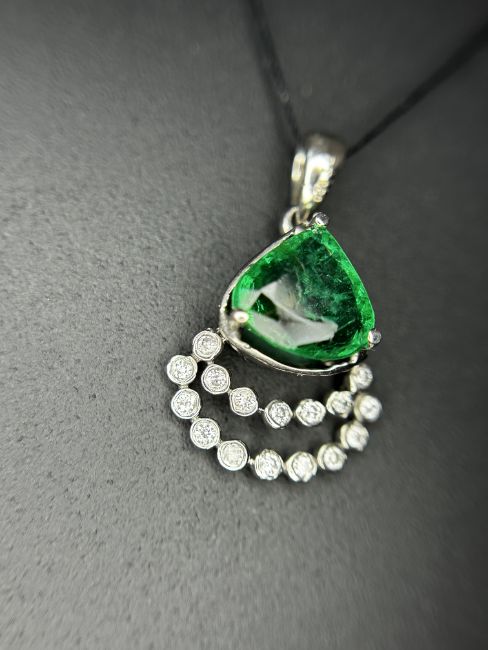 Beautiful 1.37ct Natural Emerald Pendant in Platinum 950 With Natural Diamonds