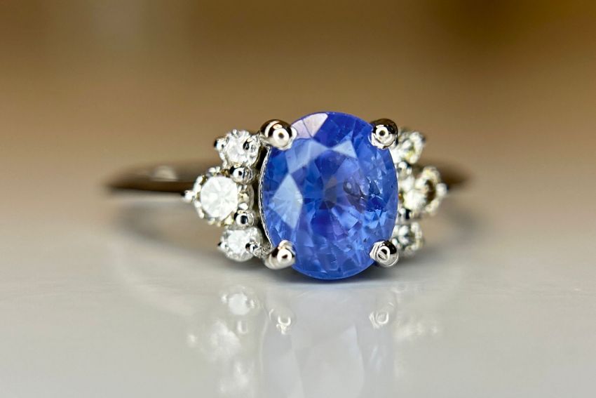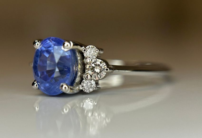 Beautiful 1.79 ct Natural Ceylon Blue Sapphire With Natural Diamonds & 18k White Gold.