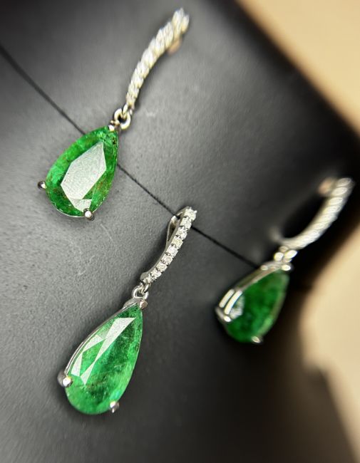 Title: Beautiful 12.27ct Natural Emerald Earrings and Pendant Set With Natural Diamonds & 18k Gold