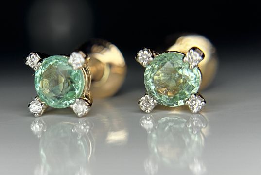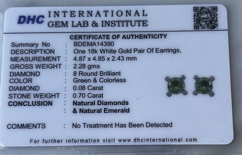 Title: Beautiful 0.70 ct Natural Emerald Earrings With Natural Diamonds & 18k Gold