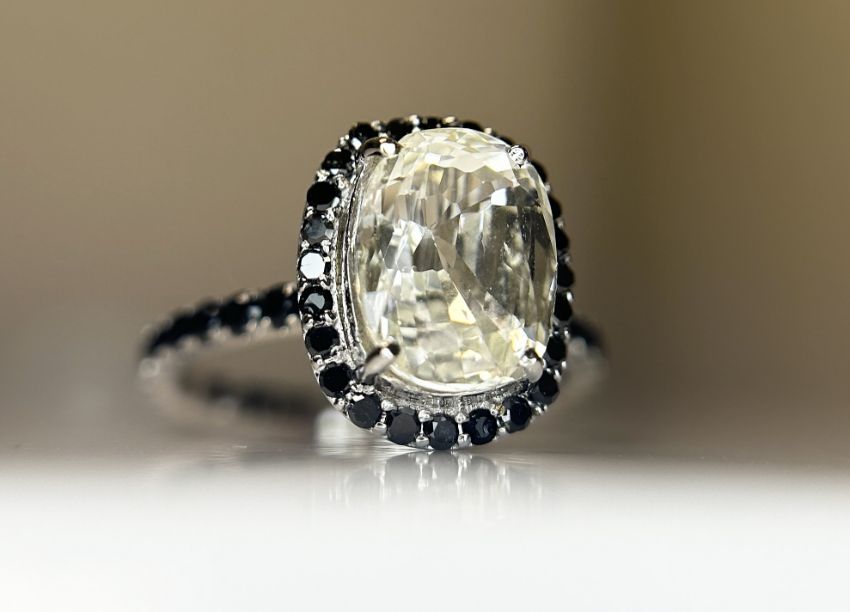 Beautiful 3.15 CT Natural Ceylon White Sapphire With Natural Diamonds & 18k White Gold.