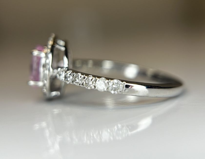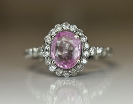 Beautiful Natural Ceylon Pink Sapphire With Natural Diamonds & 18k White Gold.