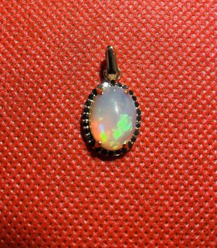 Beautiful Natural 3.60ct Opal Pendant & 0.28 Black Diamonds & 18k White Gold.